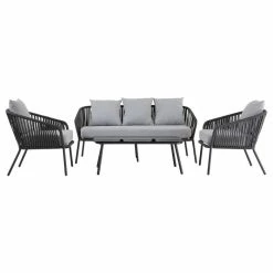 CARO-Möbel Gartenmöbel Set JAKARTA Mit Seilbespannung Und Polster In Grau